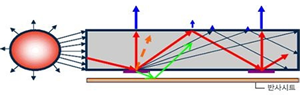 반사시트는 도광판의 뒤쪽에 위치하여 광원으로부터 오는 빛을 전면으로 반사시키는 역할을 한다.